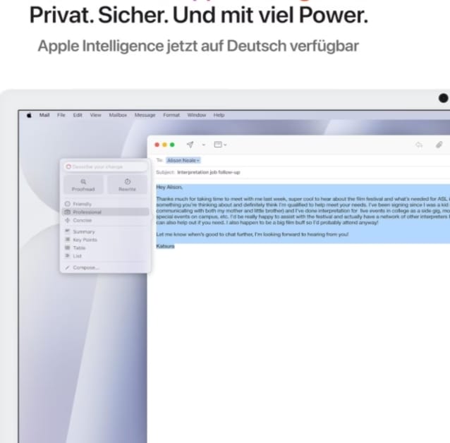 MIT DER POWER DES M4 – Erledige mehr in weniger Zeit, mit dem Apple M4 Chip. Er sorgt dafür, dass alles absolut flüssig läuft – vom Bearbeiten von Fotos über das Erstellen von Präsentationen bis hin zum Gaming.